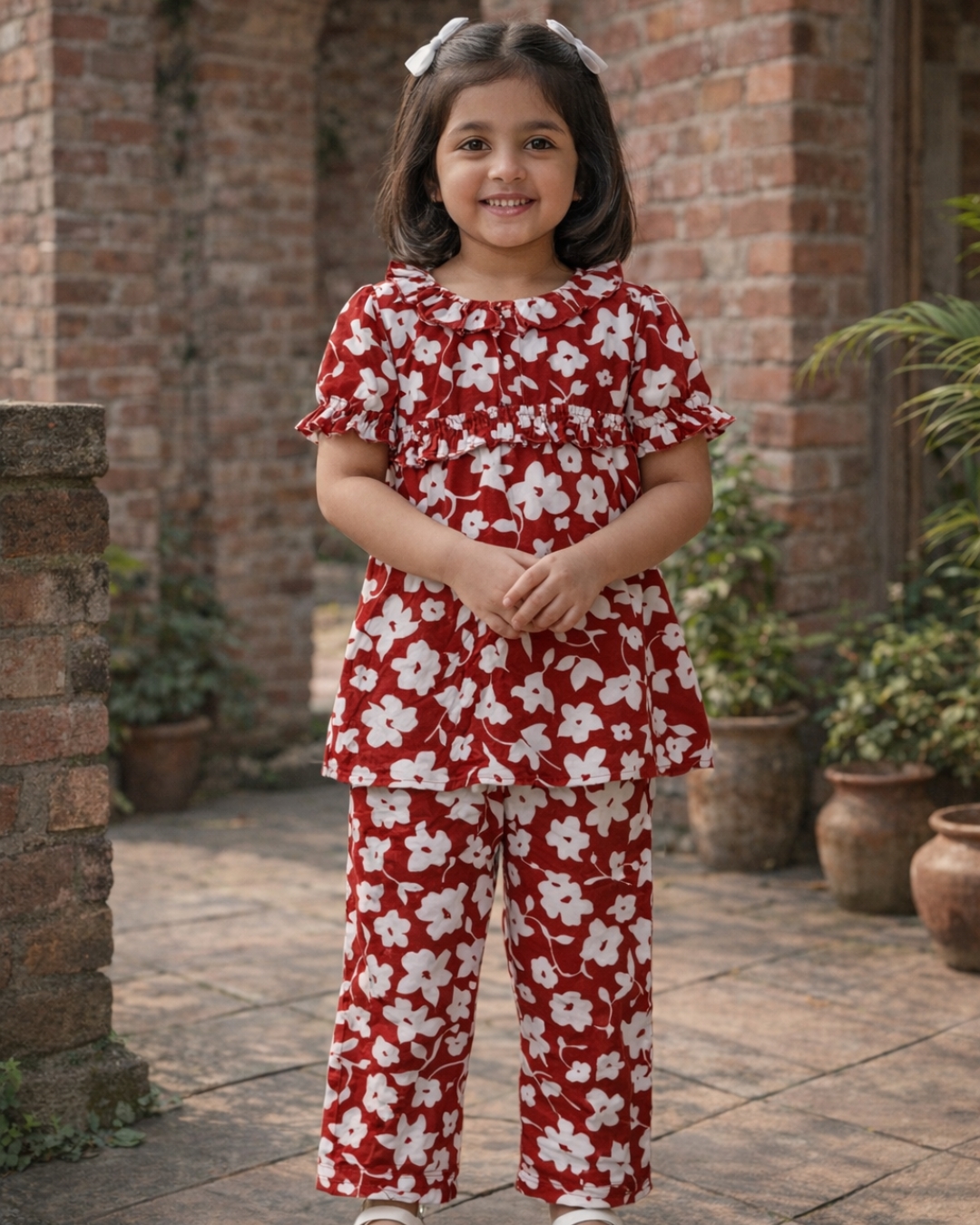 - 🌸 ডিজাইন: ঐতিহ্যবাহী লাল-সাদা রঙের সমন্বয়, আধুনিক কাটে তৈরি কো-অর্ডস সেট।